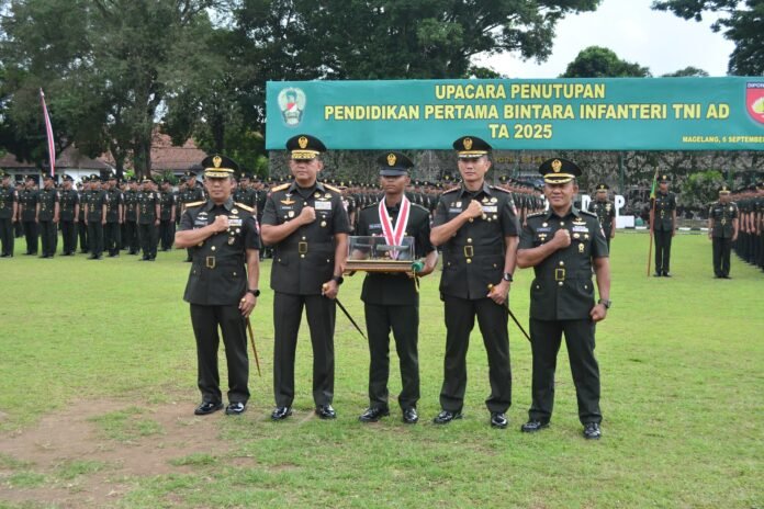 MAGELANG – // www.RaiderNet.id // Komandan Korem 072/Pamungkas, Brigjen TNI Bambang Sujarwo, S.H., M.Sos., M.M., menghadiri Upacara Penutupan Pendidikan Pertama Bintara (Dikmaba) Infanteri TNI AD TA 2025 yang dipimpin oleh Pangdam IV/Diponegoro, Mayjen TNI Achiruddin, S.E., M.Han., bertempat di Lapangan Hoesen Hirohoesodo, Rindam IV/Diponegoro, Kota Magelang, Sabtu (6/9/2025).
