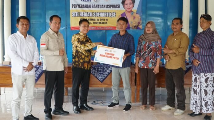GUNUNGKIDUL DIY – // www.RaiderNet.id // Wakil Bupati Gunungkidul, Joko Parwoto, secara simbolis menyerahkan bantuan ayam petelur Merah Putih serta alat dan mesin pertanian (alsintan) melalui Dinas Pertanian dan Pangan Kabupaten Gunungkidul di Kalurahan Karangsari, Kapanewon