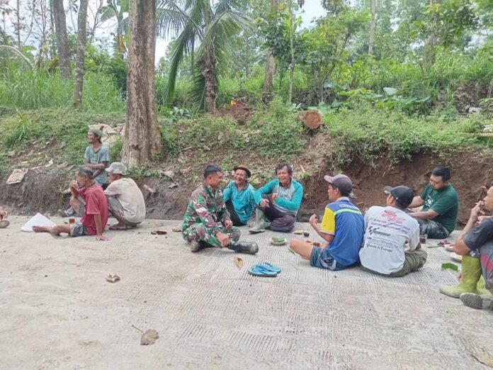 BOYOLALI — // www.RaiderNet.id // Kebersamaan dan semangat gotong royong kembali terlihat di Desa Gumuk Rejo, Kecamatan Teras, Kabupaten Boyolali. Babinsa Koramil 04/Teras Kodim 0724/Boyolali, Sertu Hariyanto, melaksanakan Komunikasi Sosial (Komsos) bersama warga di sela-sela kegiatan gotong royong pembangunan jalan desa, Rabu (07/01/2026).